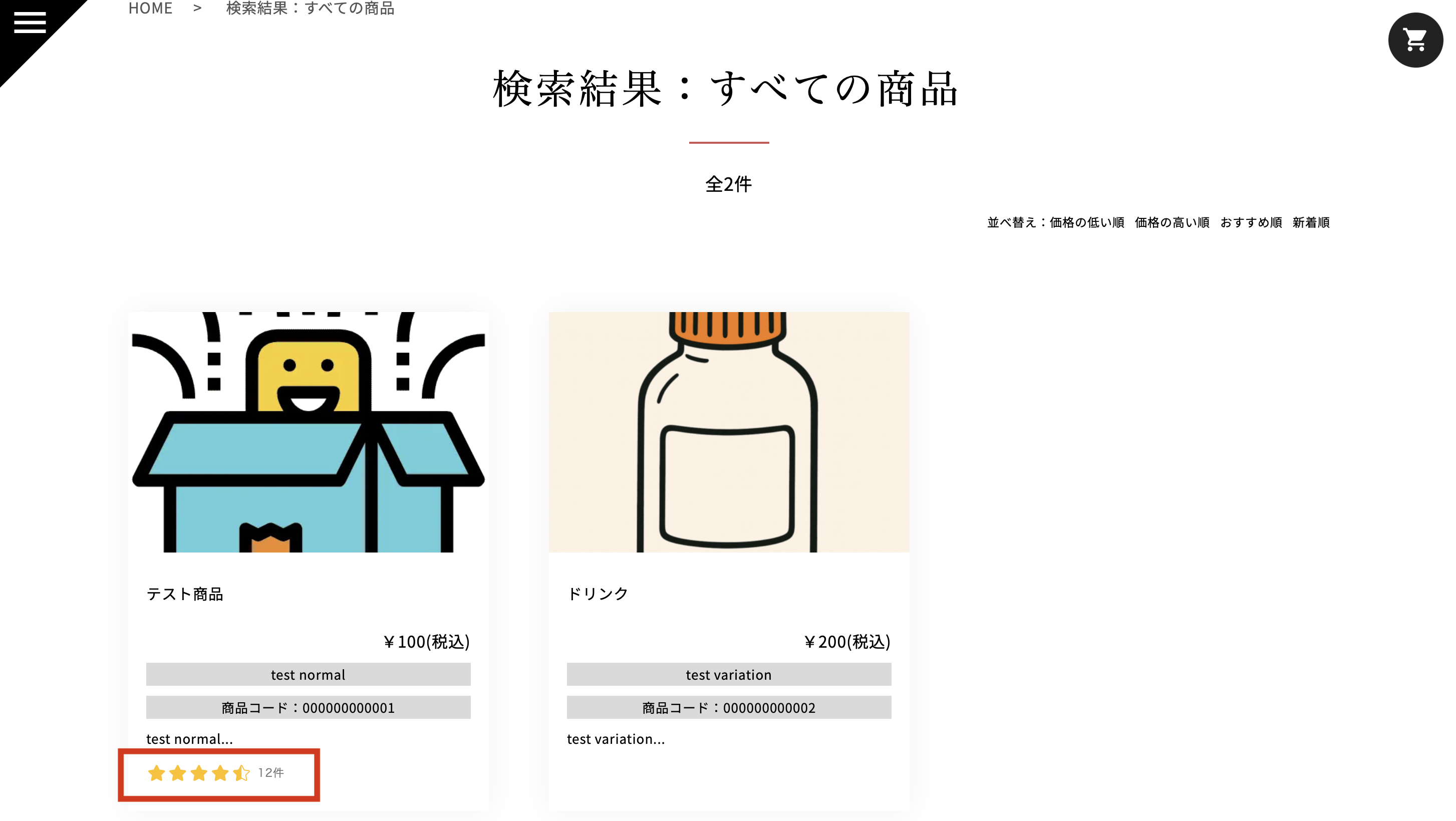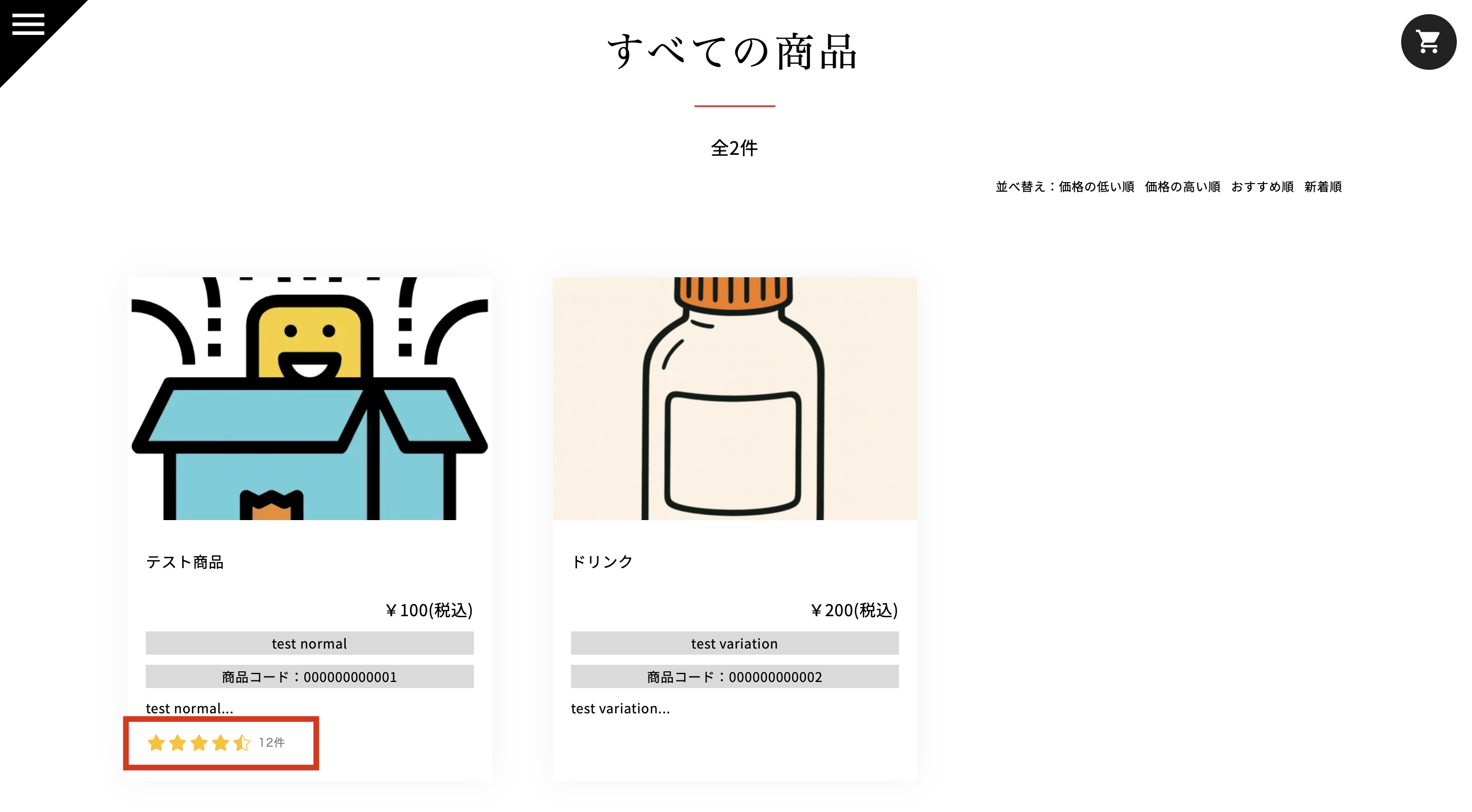 ③商品カテゴリーページにスターレーティングが表示されました🎉