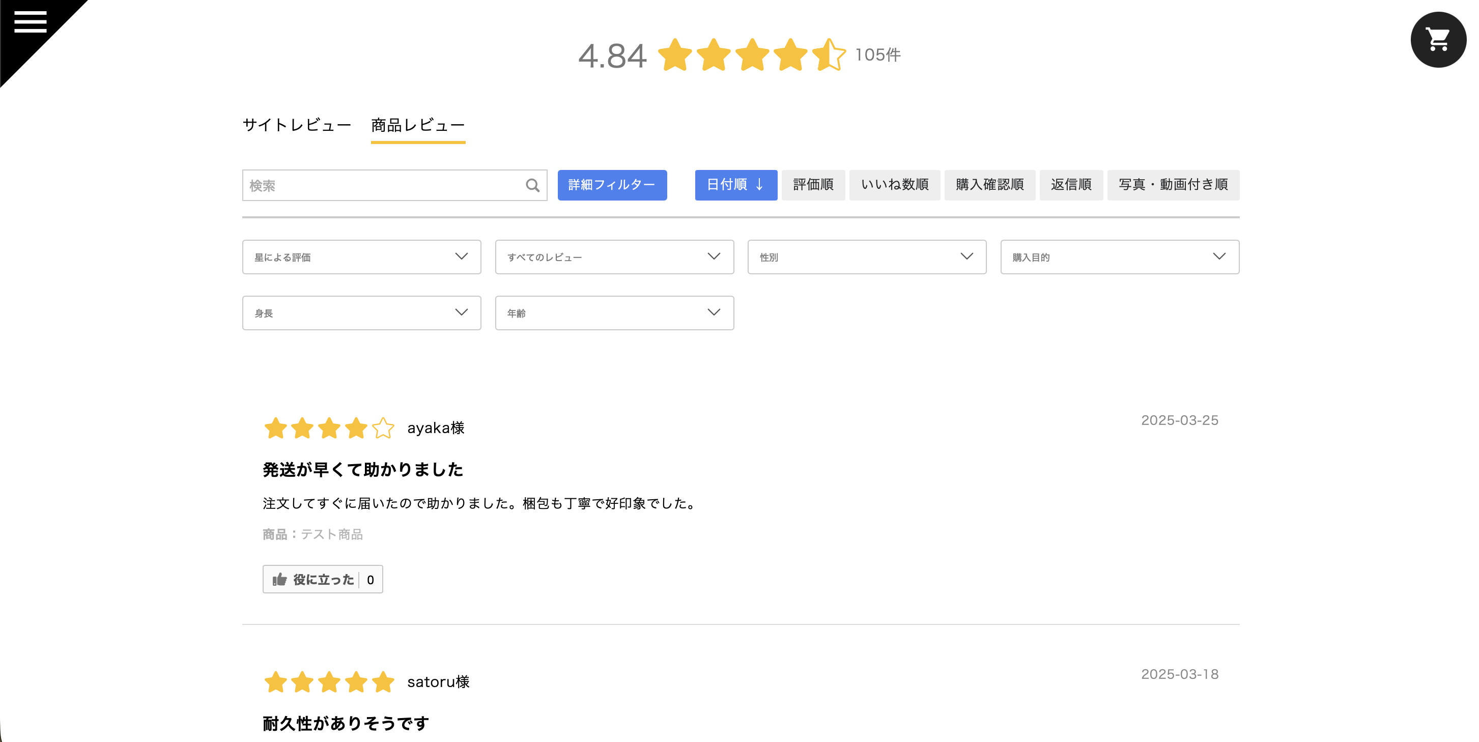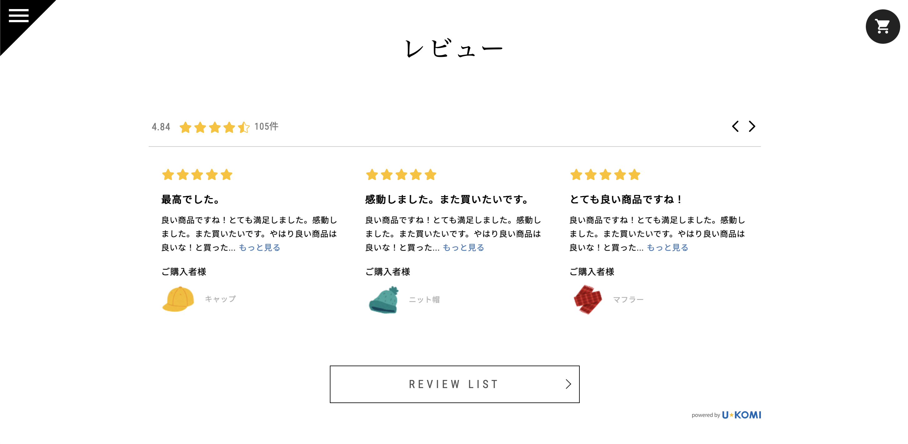 ☝️商品詳細ページの下にレビューを表示することで、ページの変遷を減らすことができます。