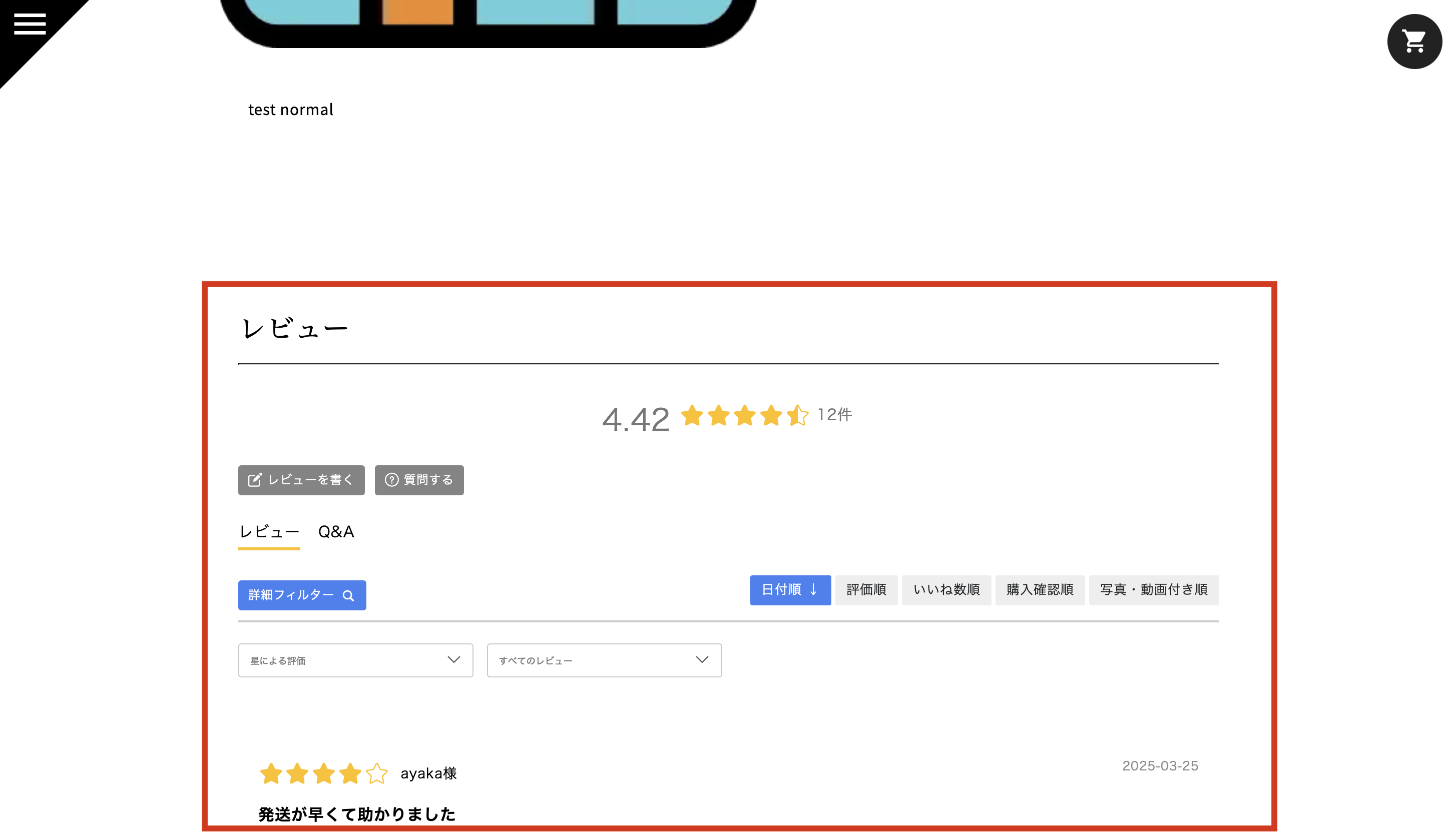③商品詳細下部に、レビュー一覧が表示されました🎉