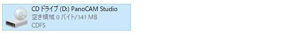 USBケーブルを使用して、本機をPCに接続するとデスクトップにCD-ROMのアイコンがあらわれます。アイコンを開き、「PanoCam Studio」のインストールファイルを実行してください。