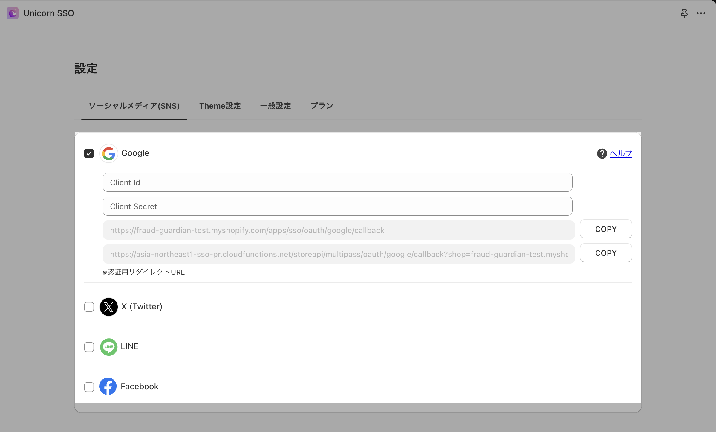 ログインを提供したいSNSのデベロッパー登録を行います。
