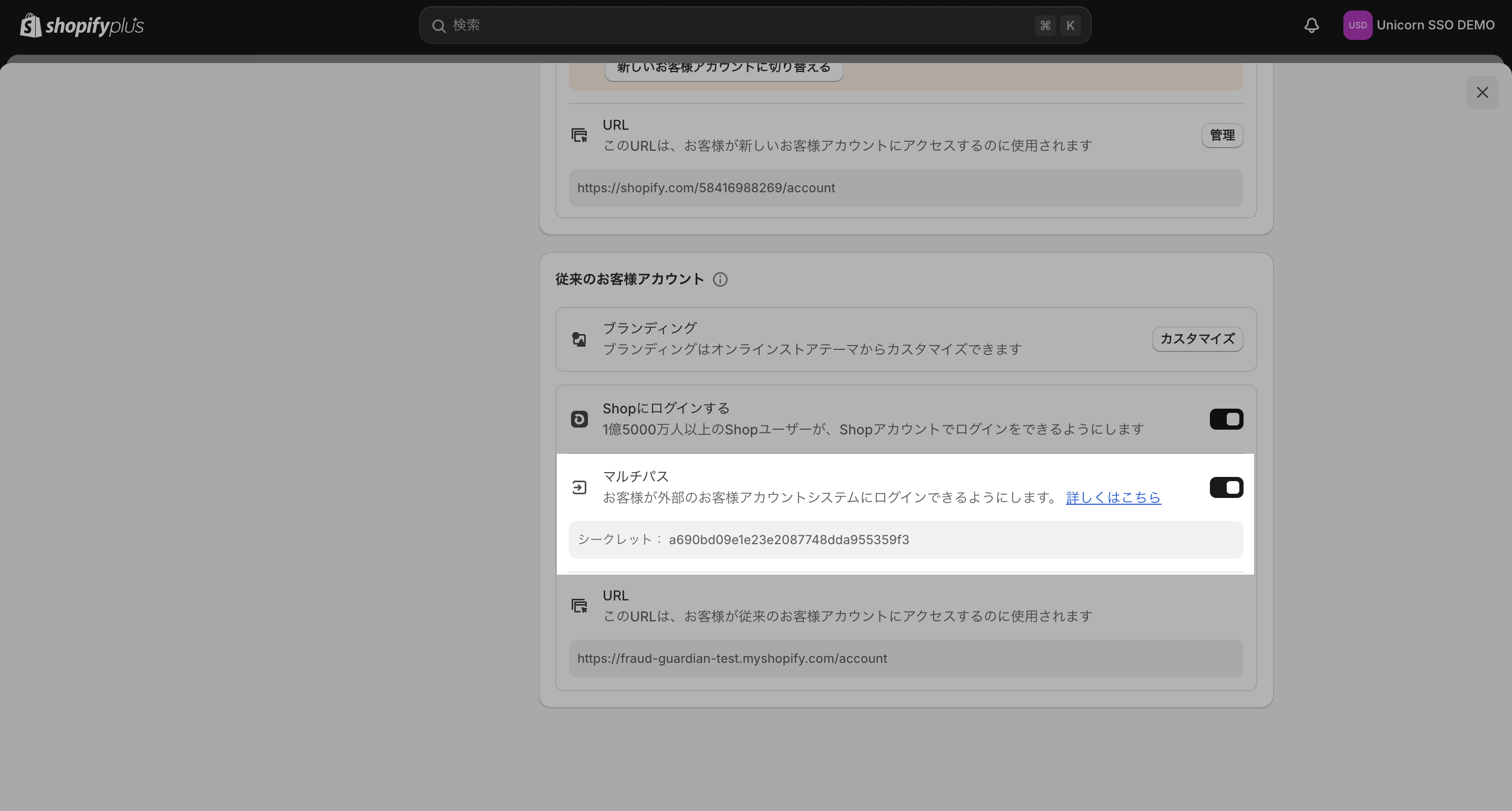 マルチパスの設定を有効にし、「シークレット」キーをコピーする