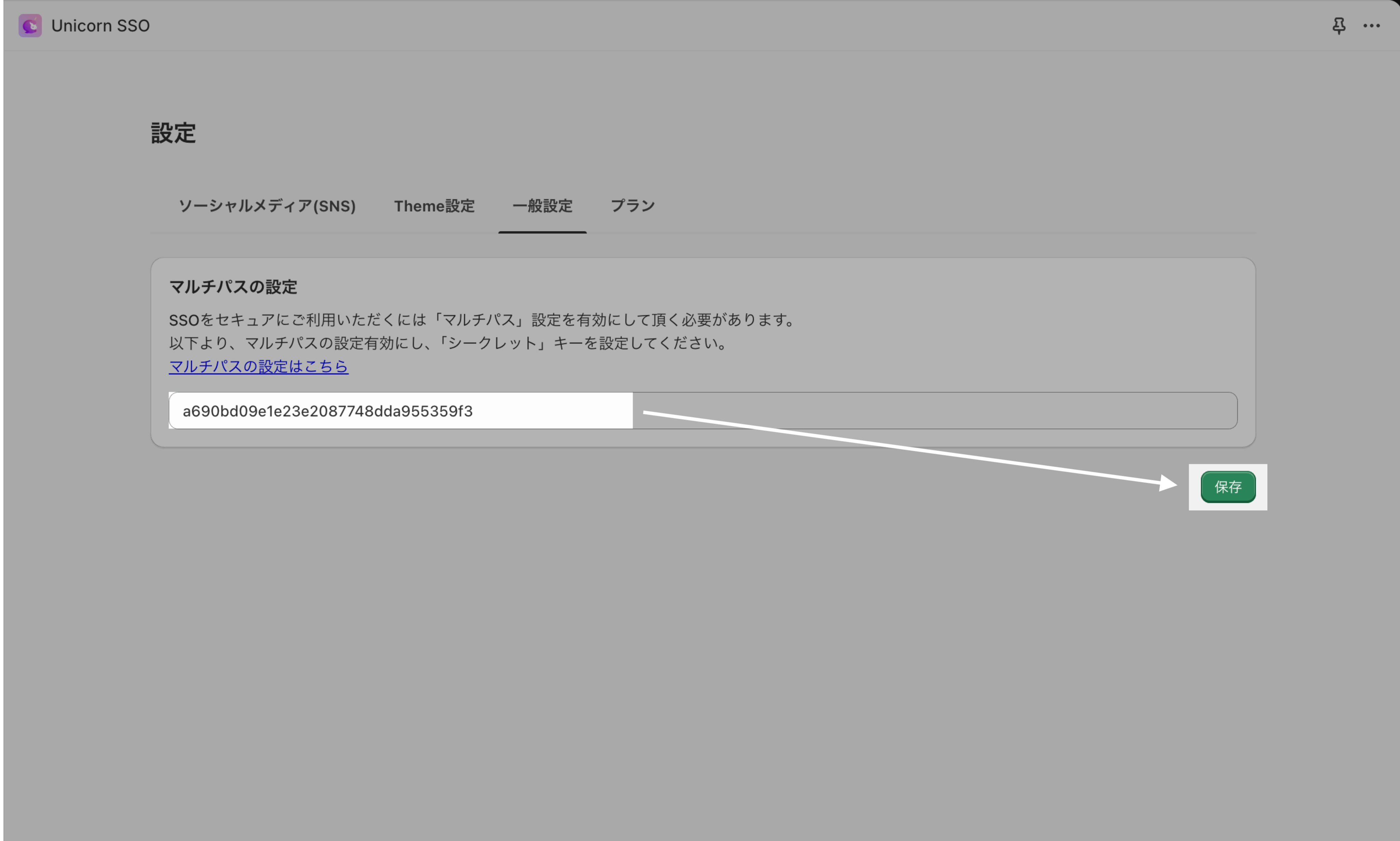 アプリの一般設定にて、「シークレット」キーをペーストし、[保存する]をクリック