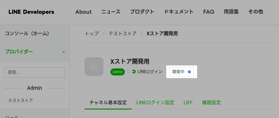 ※ チャネルが 開発中 となっている場合は、上記操作では申請は進行しませんが、開発用に権限は付与されます。