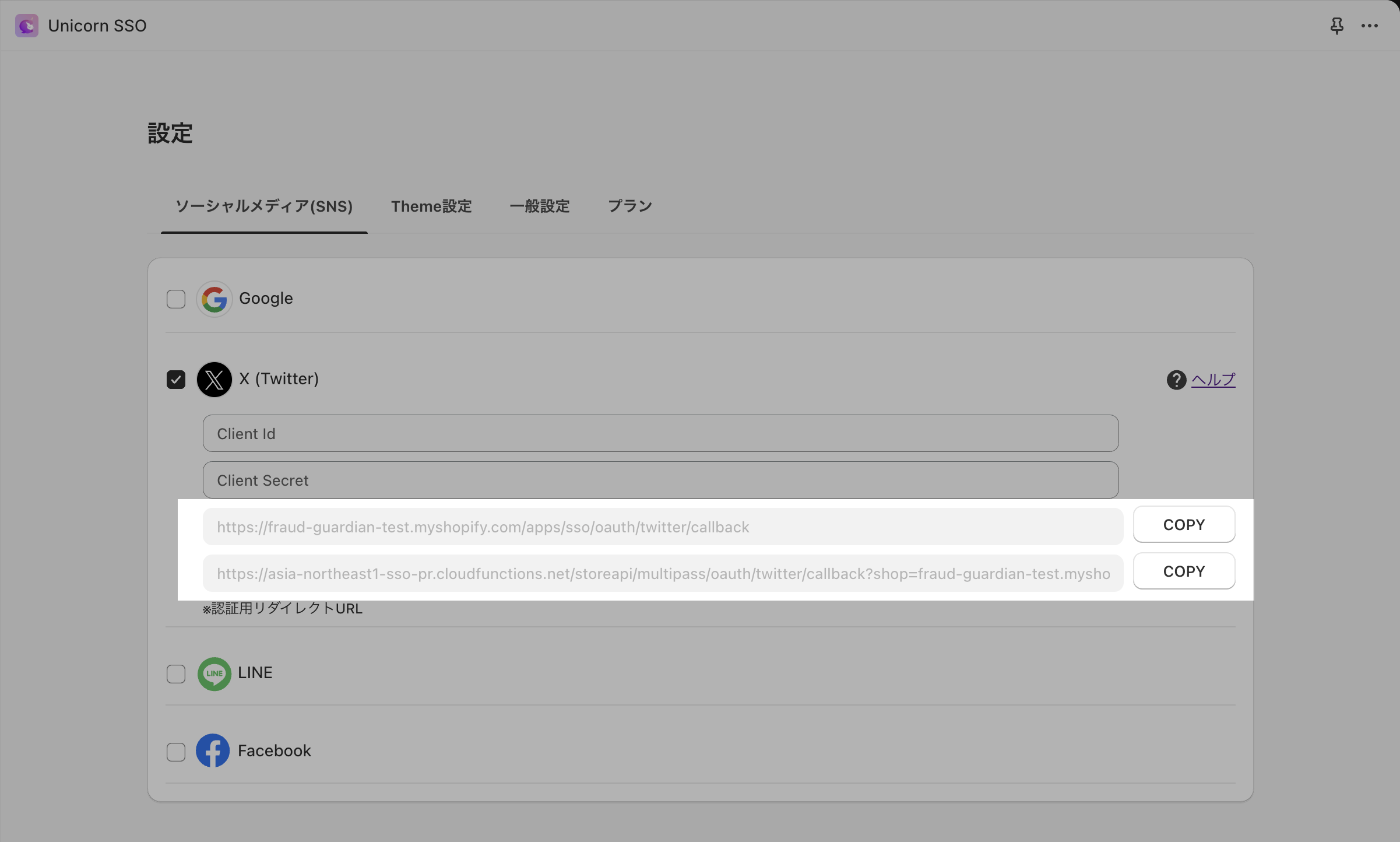 上記手順で得た Client ID と Client Secret をアプリに記載します。