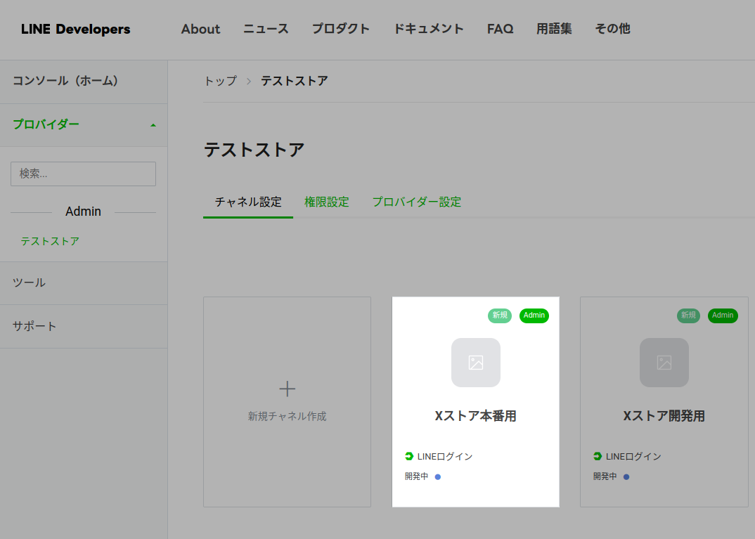 プロバイダー詳細画面で該当のチャネルを選択します(今回は “Xストア本番用” を昇格させます)