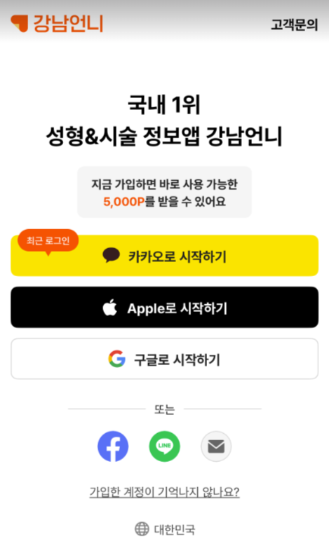 일반 유저와 동일하게 강남언니 앱을 다운받아, 강남언니에 가입해 주세요.