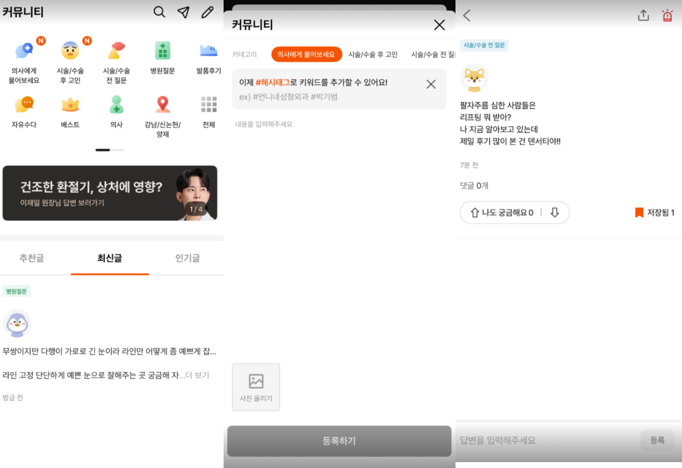 권장 카테고리 - 의사에게 물어보세요, 시술/수술 후 고민, 시술/수술 전 질문