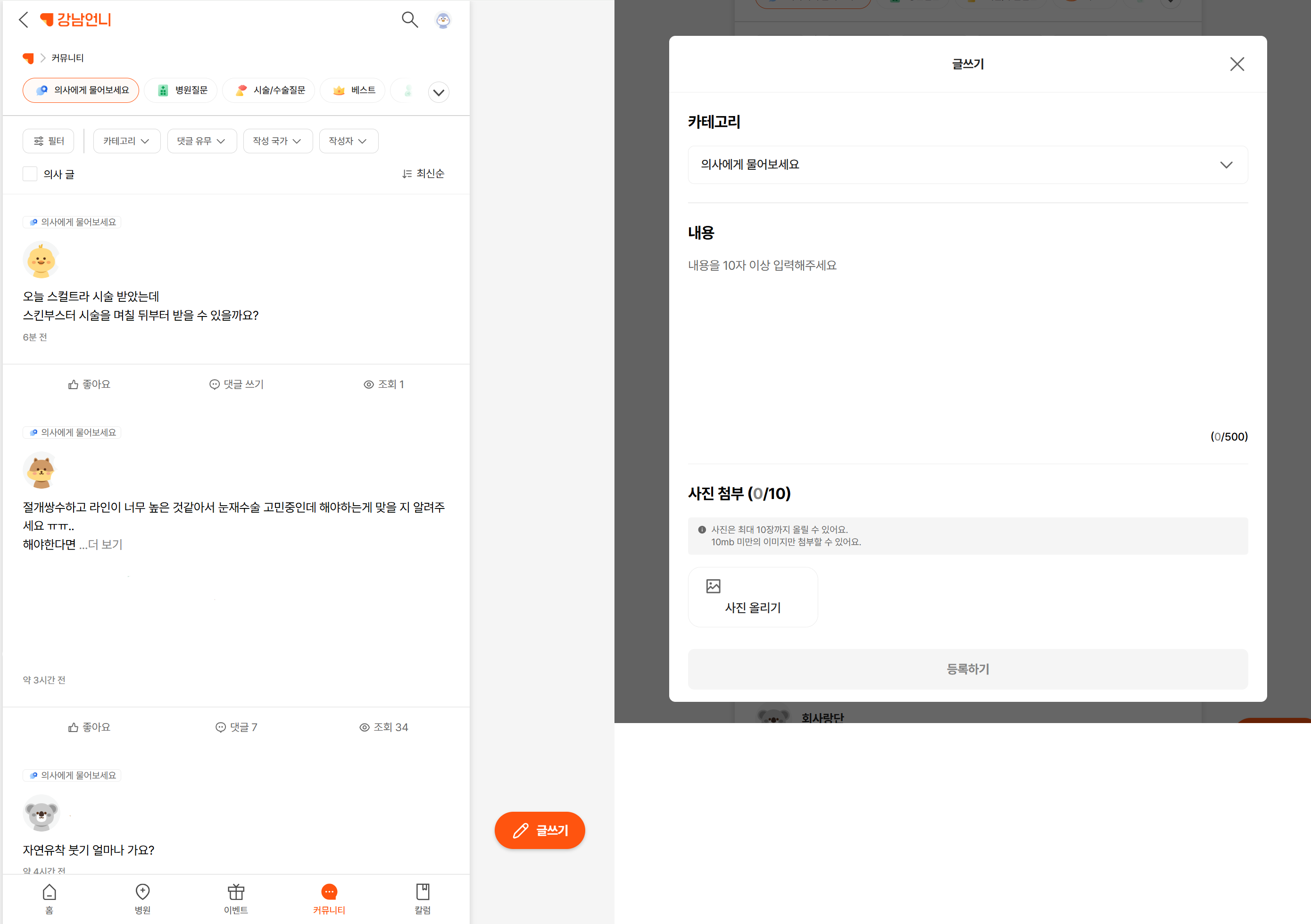 시술/수술에 관한 게시글 or 댓글로 유저들과 직접 소통해 주세요.