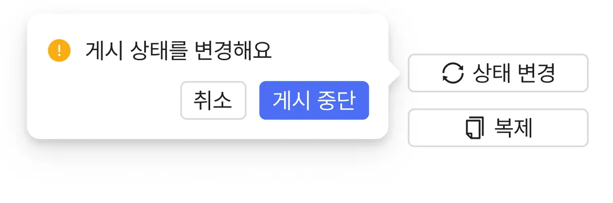 만약 게시종료일이 도래하여 게시중단이 된 경우, 게시종료일을 먼저 변경한 뒤 게시중으로 상태를 변경해주세요.