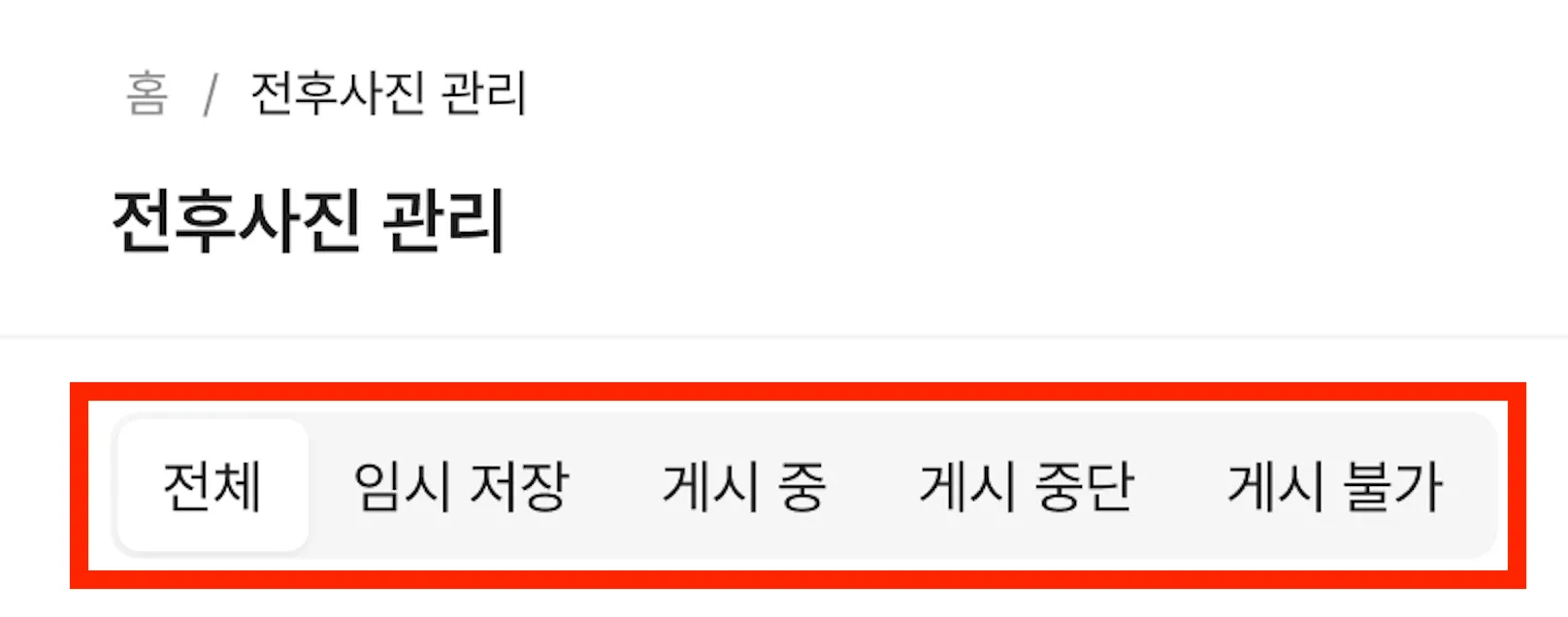 전후사진의 게시상태는 총 3가지가 있고, 목록에서 상태별로 필터링이 가능해요.