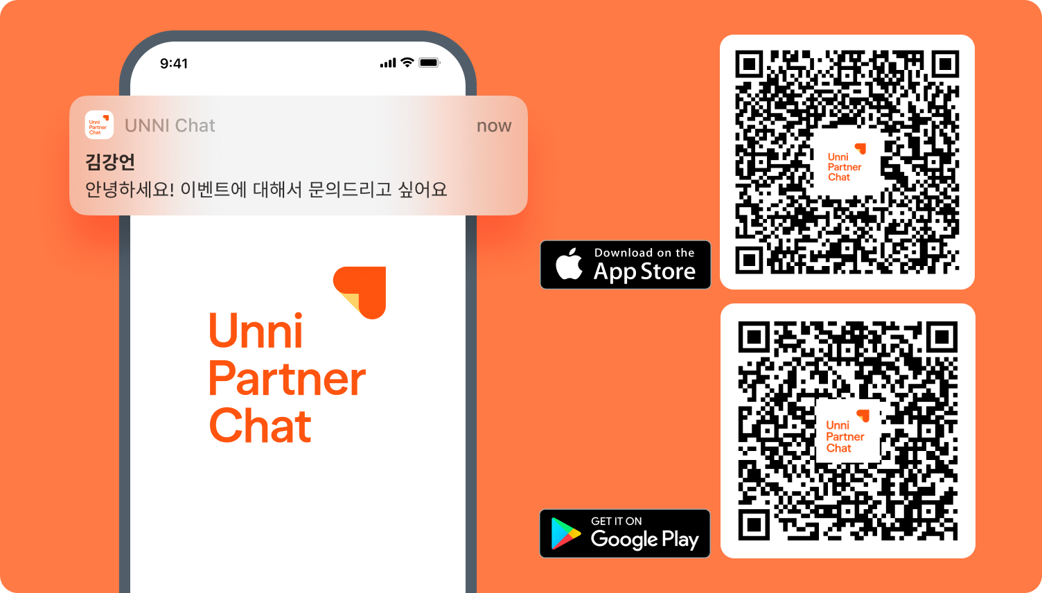 이제 스마트폰 푸시 알림으로 신규 문의를 즉시 확인하고, 라인/위챗 유도 없이 플랫폼 안에서 고객을 꽉 잡을 수 있는 'unni partner chat' 모바일 앱이 출시되었습니다!