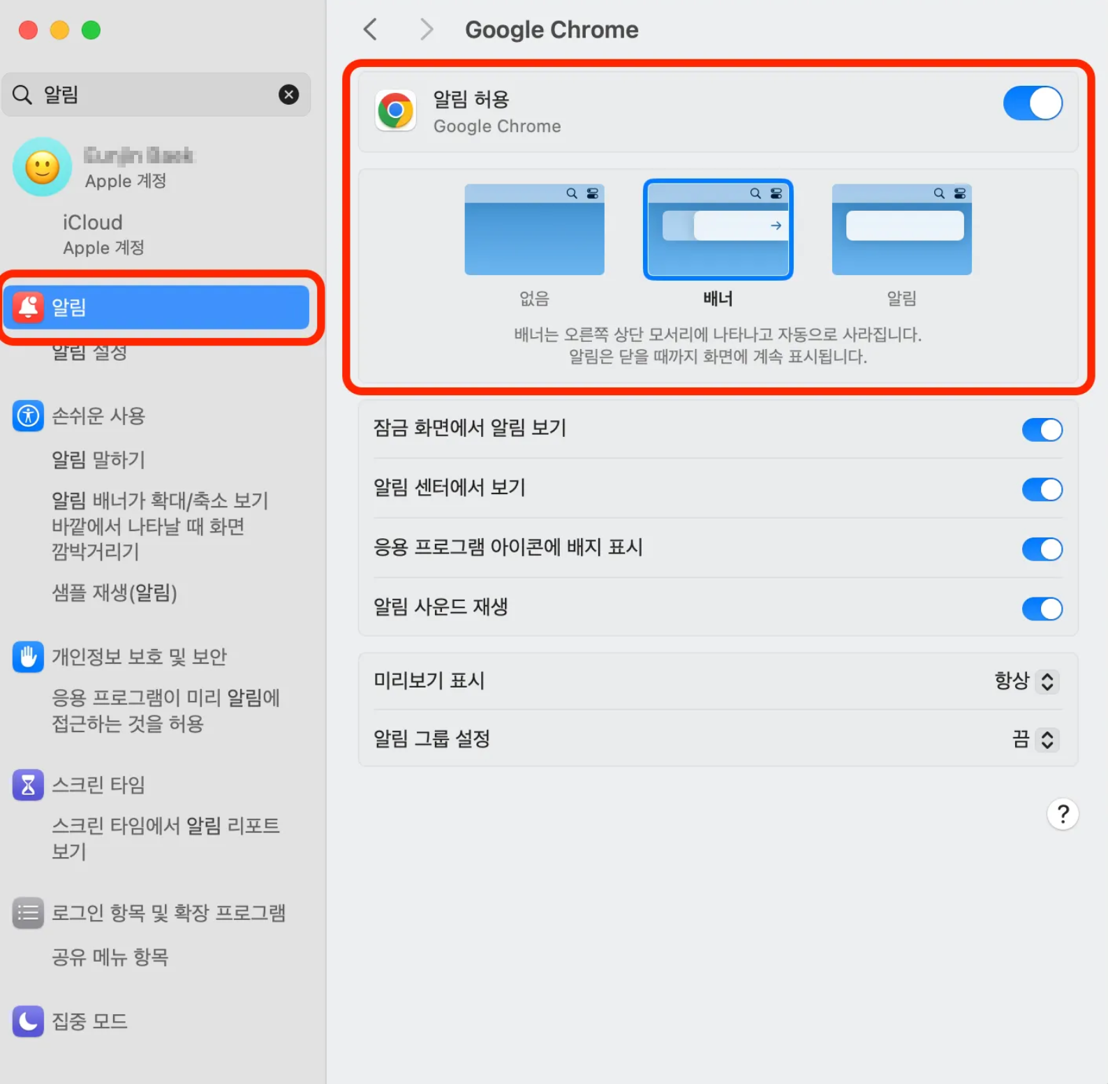 알림은 시스템 설정 + 브라우저 설정이 모두 켜져 있어야 수신됩니다.아래 내용을 한 번만 확인해 주세요.