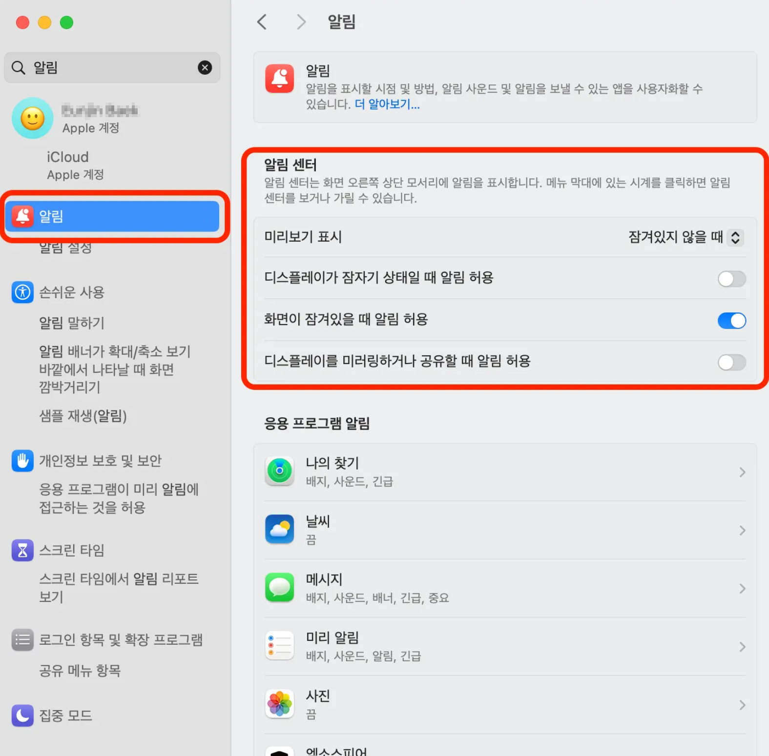 알림을 원하지 않으실 경우, 위 설정을 반대로 변경해 주세요.