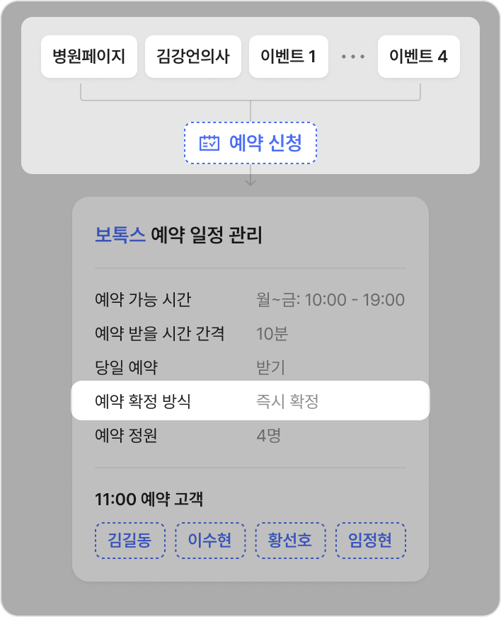 예약 확정 방식을 수정하면, 수정한 예약 일정 관리에 연결된 모든 이벤트/의사/병원페이지는 이 확정 방식으로 예약을 접수 받아요.