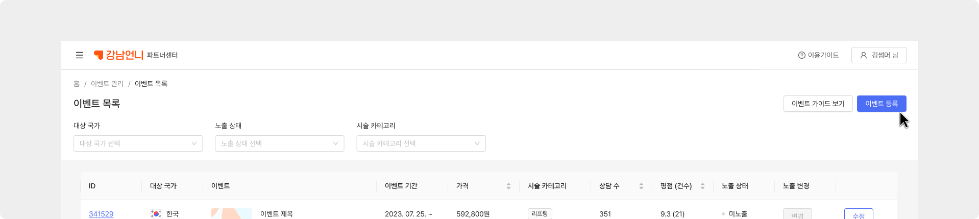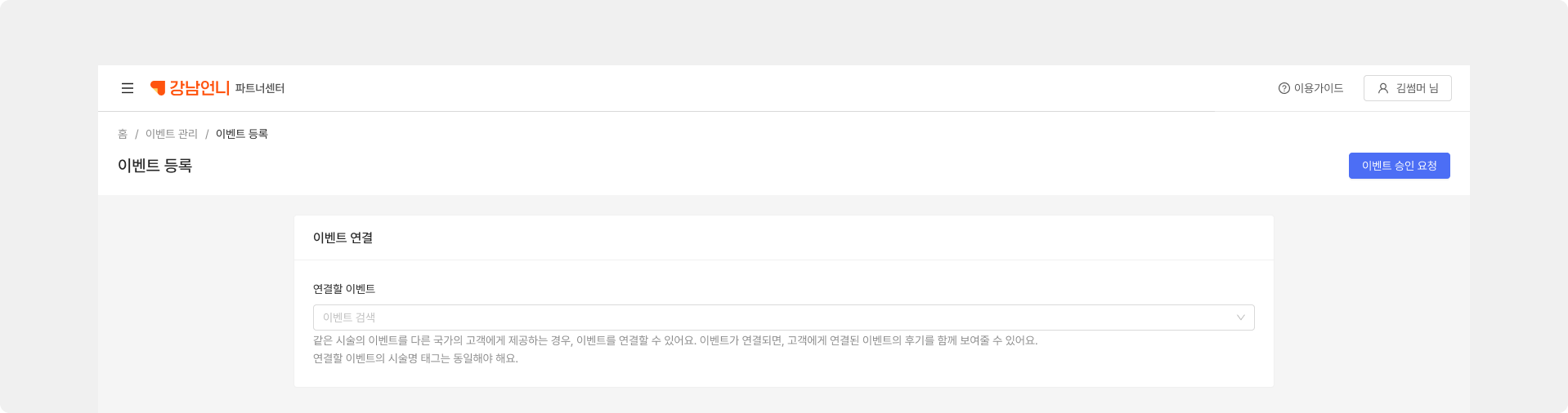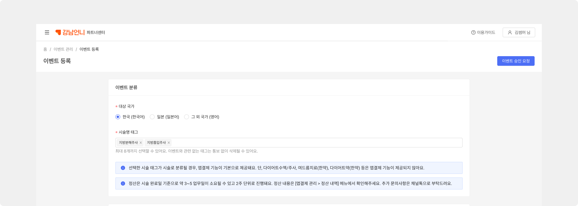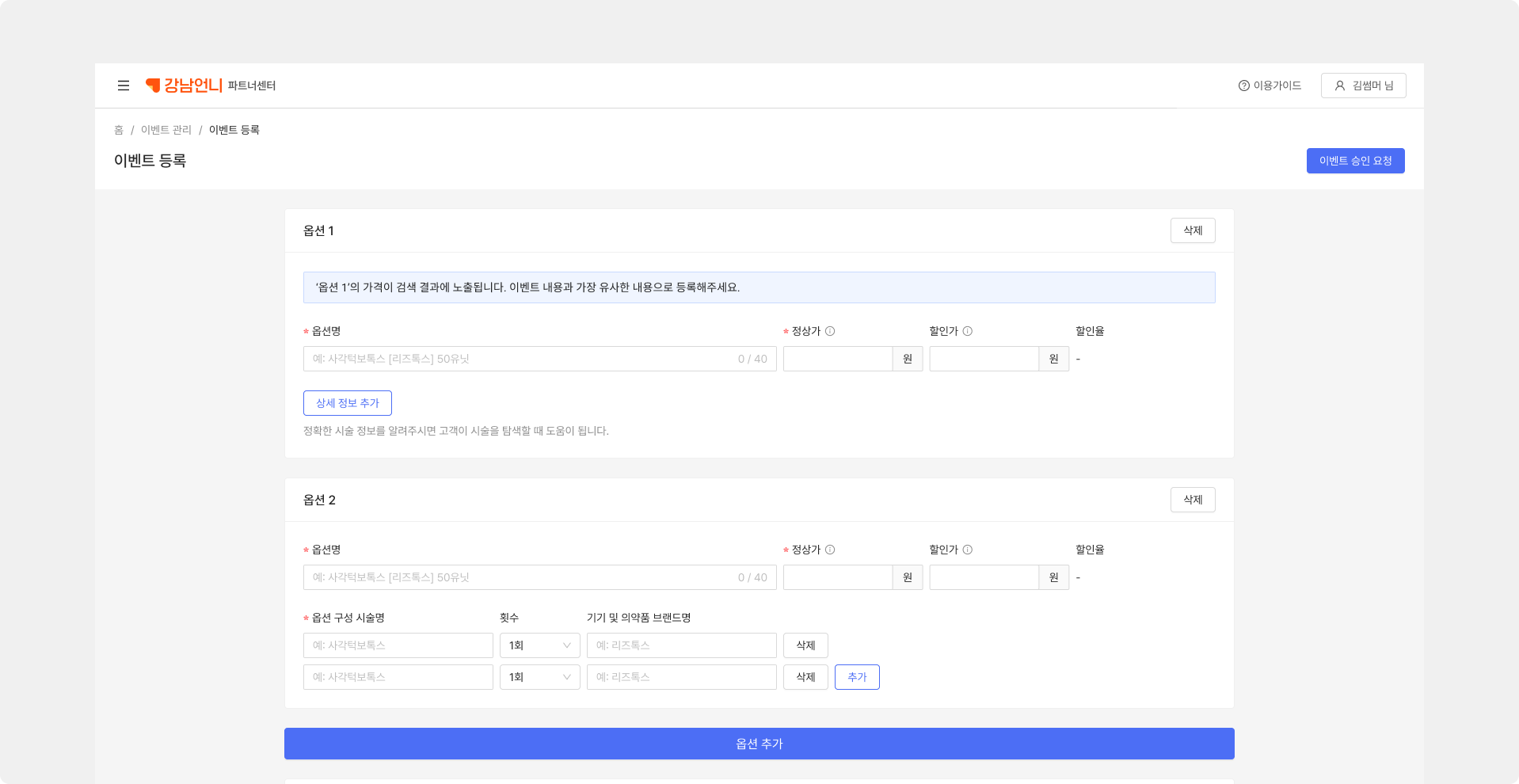 [이벤트 승인 요청] 버튼을 클릭하면 강남언니 이벤트 검수팀에 내용이 전달돼요.