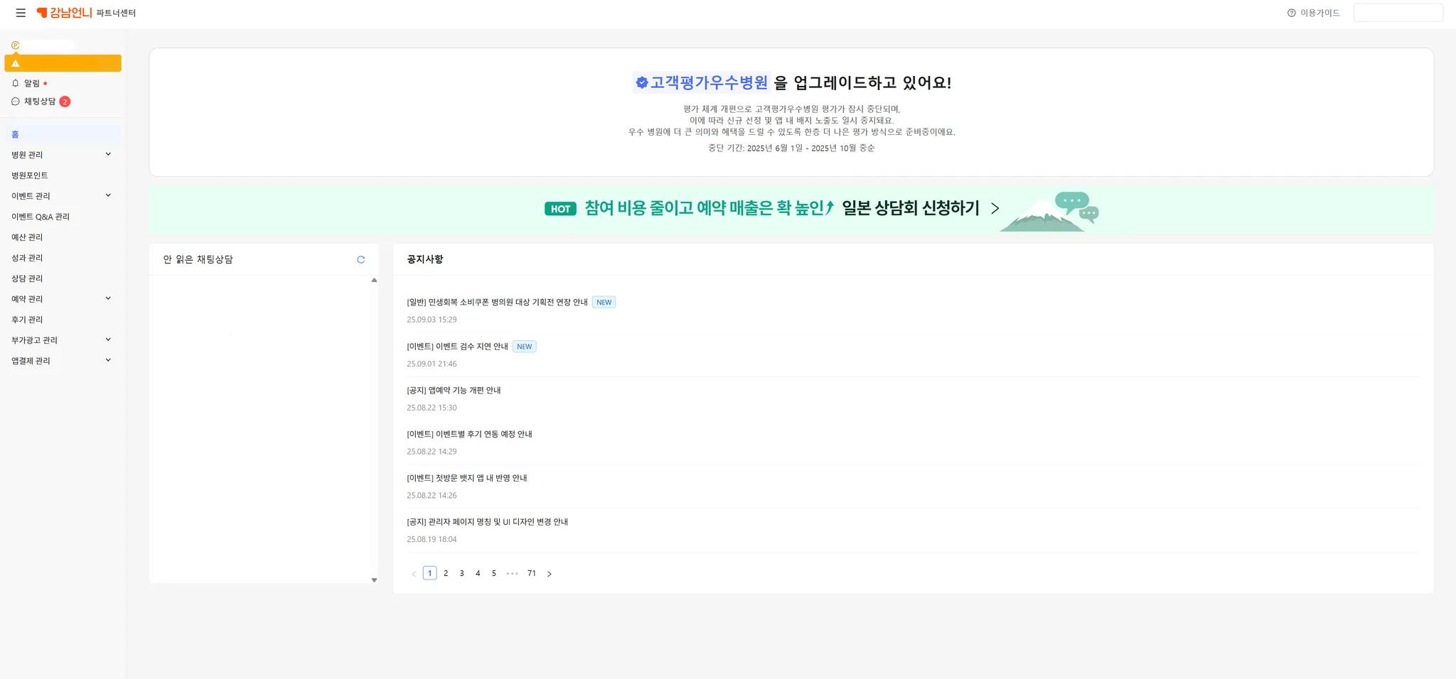 파트너센터 링크 : http://partner.gangnamunni.com/