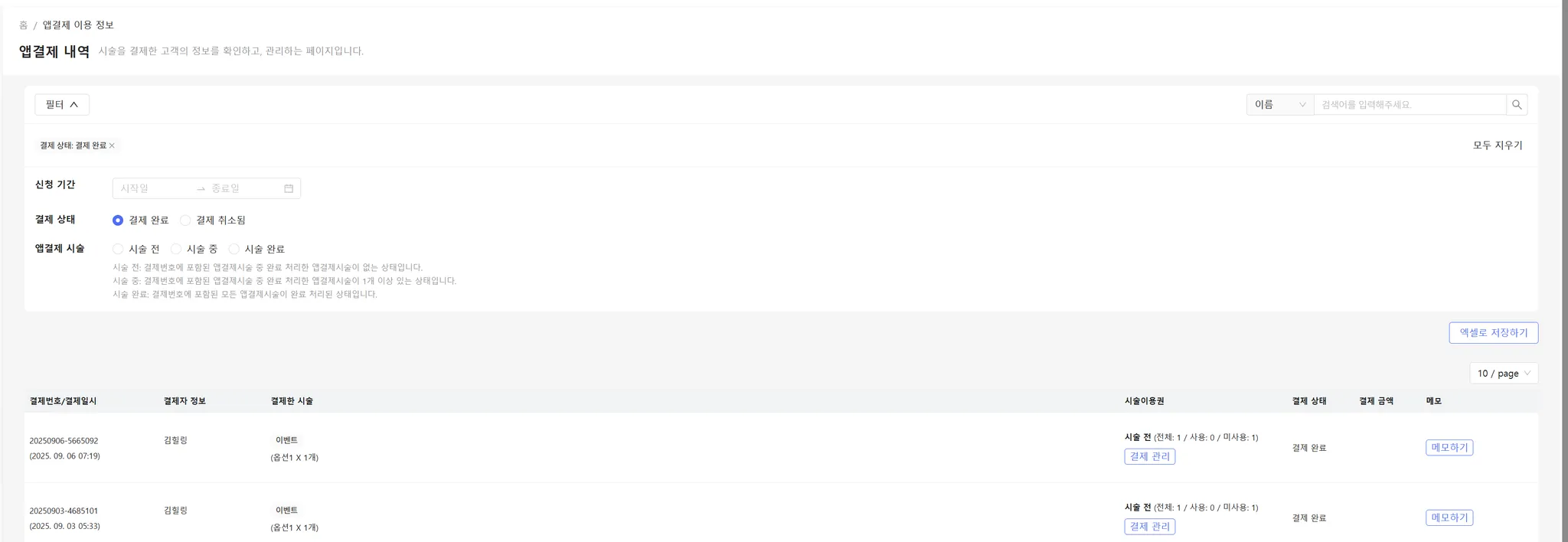 메모 : 해당 앱결제시술건에 대한 메모를 입력할 수 있습니다.