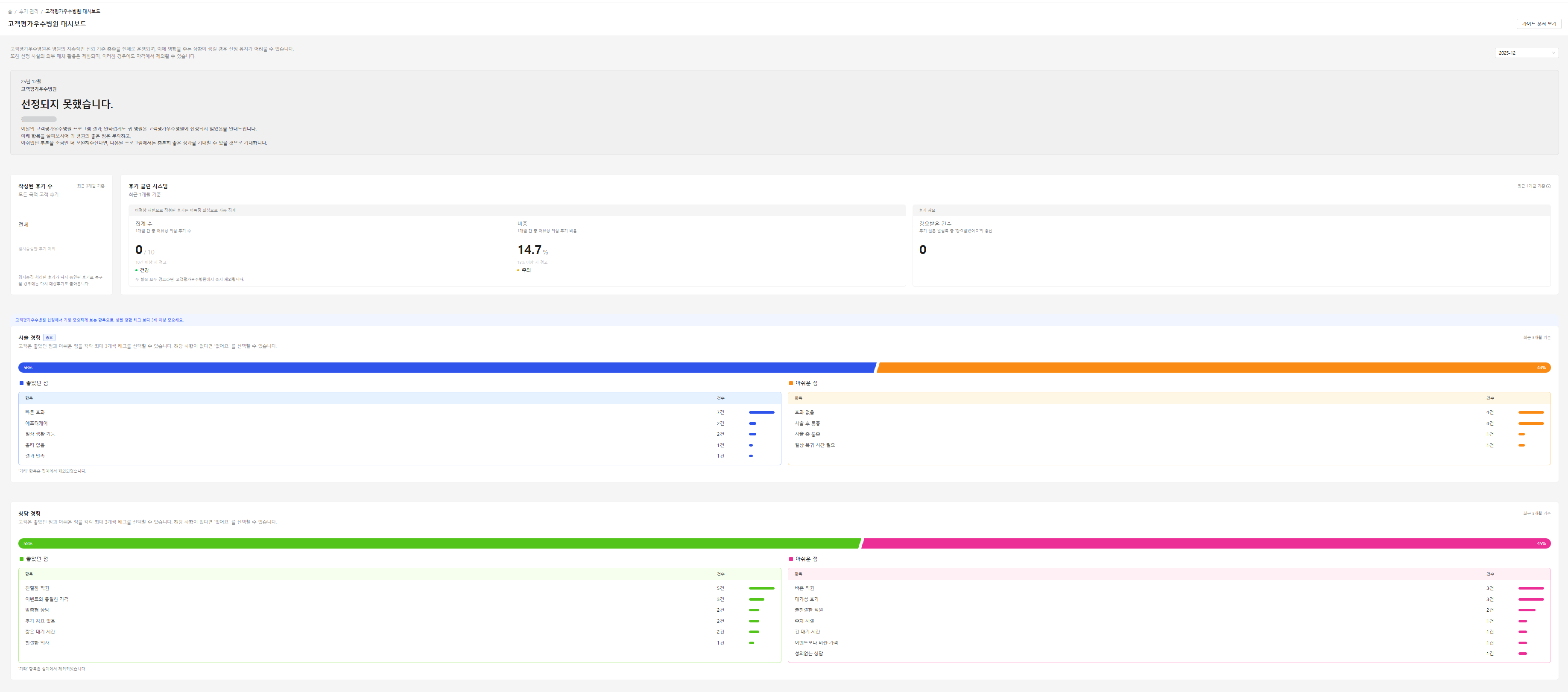 고객평가우수병원 리포트 탭 들어갔을 때 보이는 화면