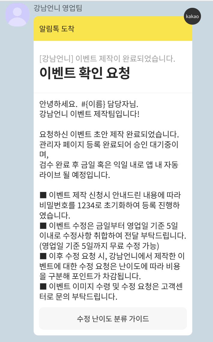 [이벤트 이미지 전달] 단계에서 발송되는 알림톡의 내용은 아래와 같습니다.