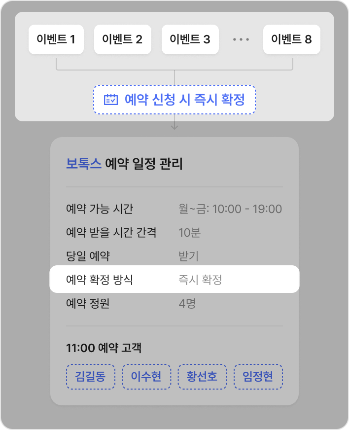 예약 확정 방식을 수정하면, 수정한 예약 일정 관리에 연결된 모든 이벤트는 이 확정 방식으로 예약을 접수 받아요.