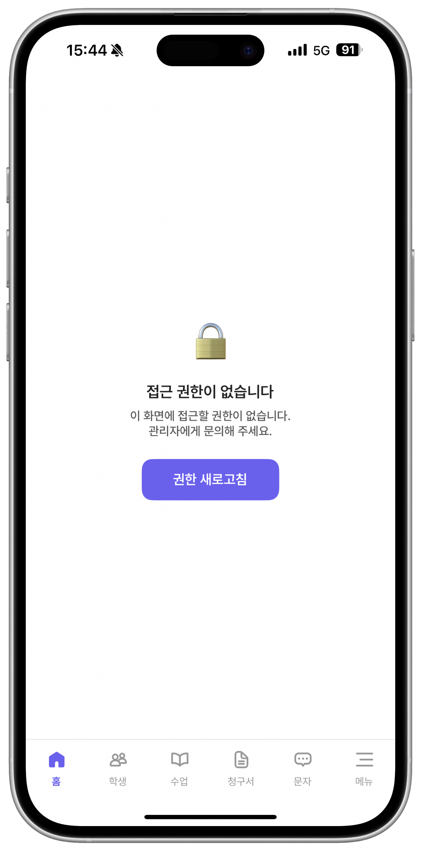 권한 변경 후 조치: 웹에서 권한을 변경했다면 앱에서 로그아웃 후 재로그인을 하거나, 새로고침을 진행해 주세요.