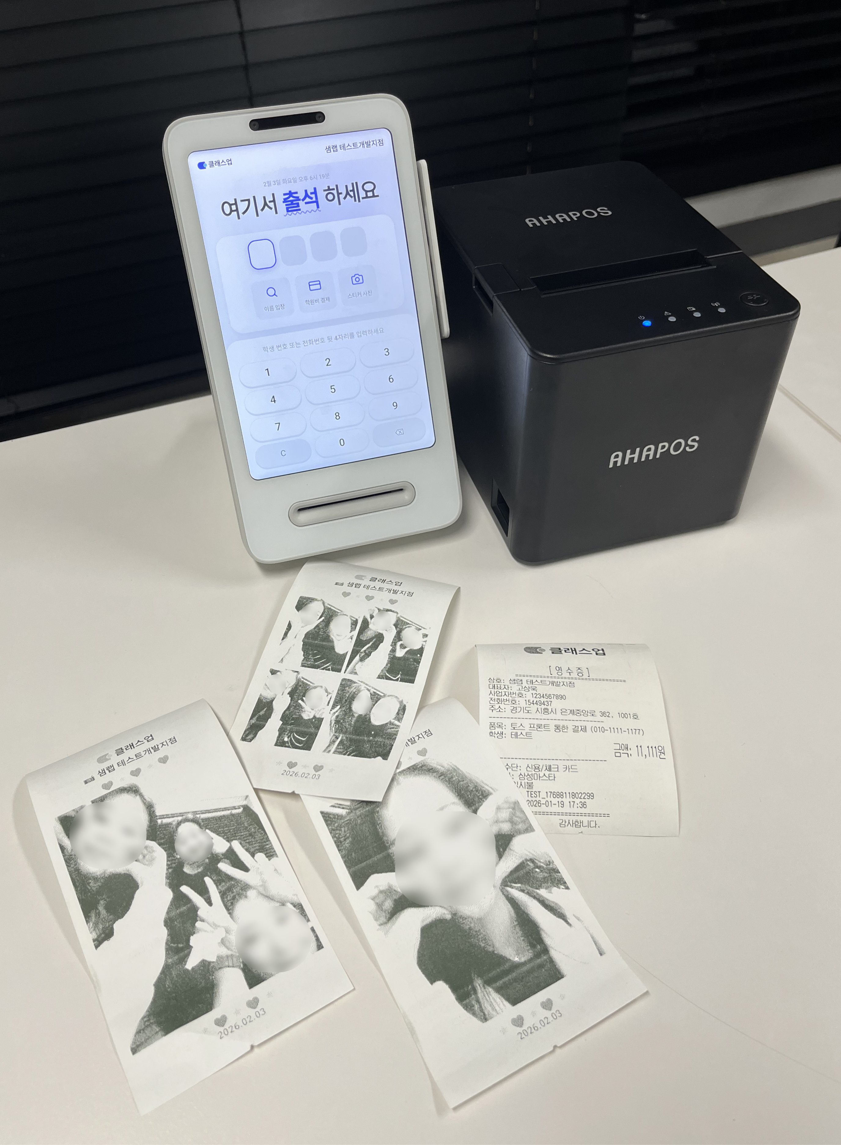 2월 중 출시되는 전용 프린터로 결제 영수증은 물론, 학원만의 특별한 기록을 남길 수 있습니다.