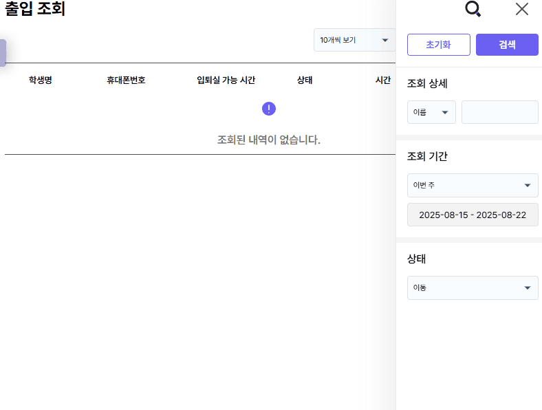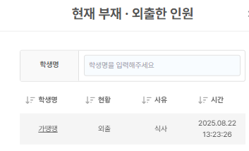 외출 시간 확인: 대시보드 출석 현황에서 학생의 외출 시간을 바로 확인할 수 있습니다.