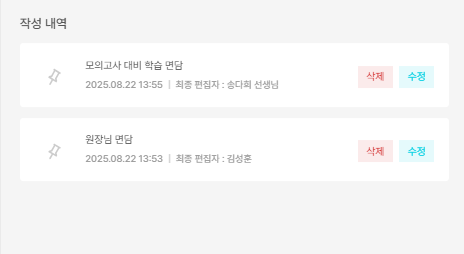 메모 최종 편집자 확인: 학생 상세정보 → 메모 탭에서 메모 최종 편집자를 확인할 수 있습니다. 이제 누가 메모를 남겼는지 정확하게 파악하고 관리해보세요.