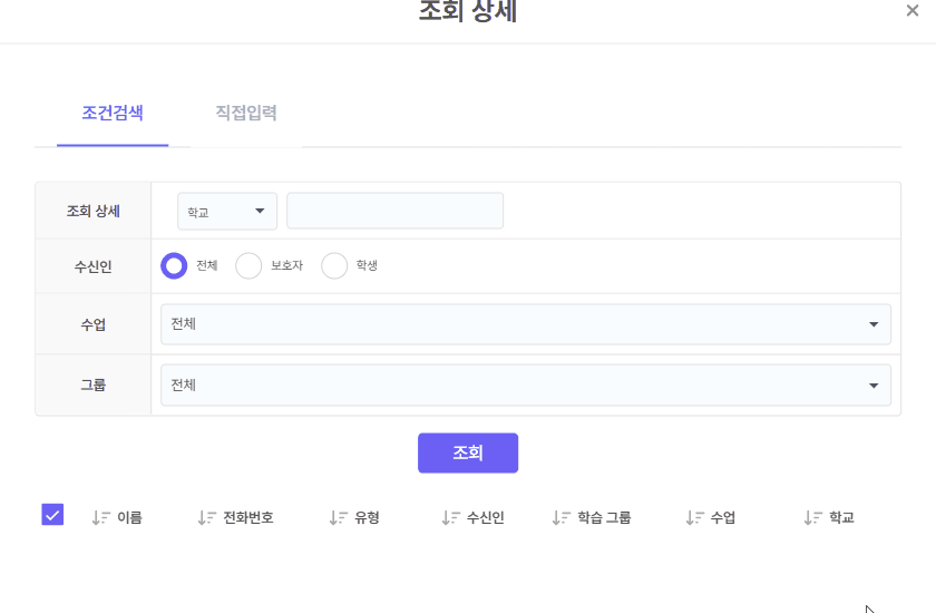 학교 검색 추가: 문자 보내기 수신자 선택 시 학교 검색 기능이 추가되었습니다. 이제 특정 학교 학생들만 선택하여 단체 문자를 보내보세요.