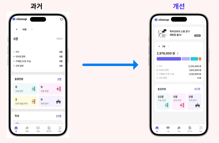 안녕하세요, 원장님! 늘 클래스업에 보내주신 관심과 소중한 의견을 모아 관리자 앱이 업데이트 되었습니다. 더 편리하고 똑똑해진 기능들을 지금 바로 확인해보세요!