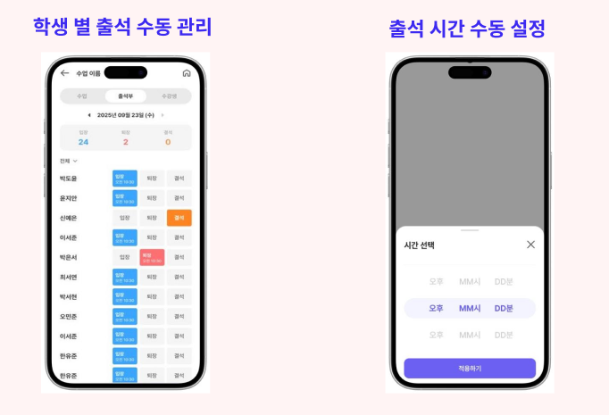 "학생이 왔는데 출석 체크를 못 했어요!", "수기로 기록하려니 번거로워요!"
