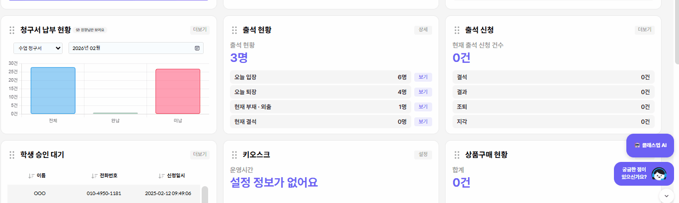 안녕하세요, 클래스업 입니다! 원장님과 선생님들께서 더 편리하게 학원을 운영하실 수 있도록 새로운 기능들을 준비했어요.