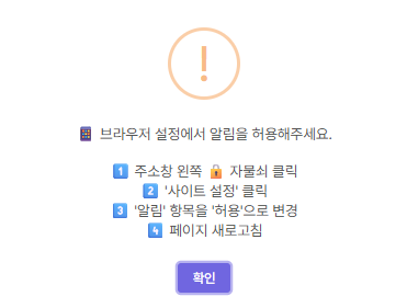 브라우저 자체의 알림을 허용해주셔야 해요~