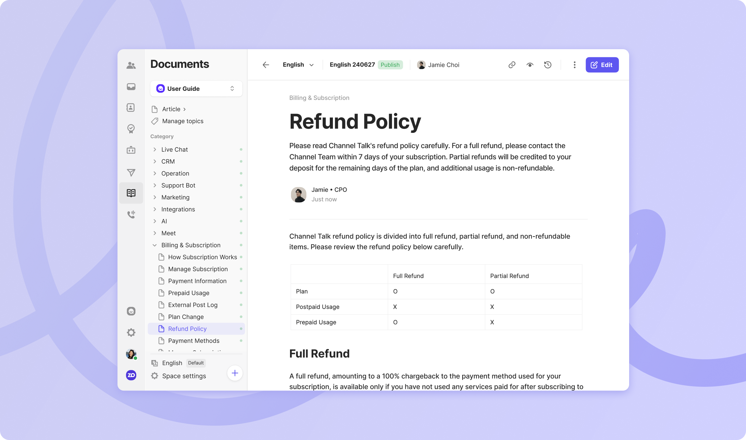 You only need to subscribe to Channel Talk's paid plan to manage all your customer support documents, helping you save money.