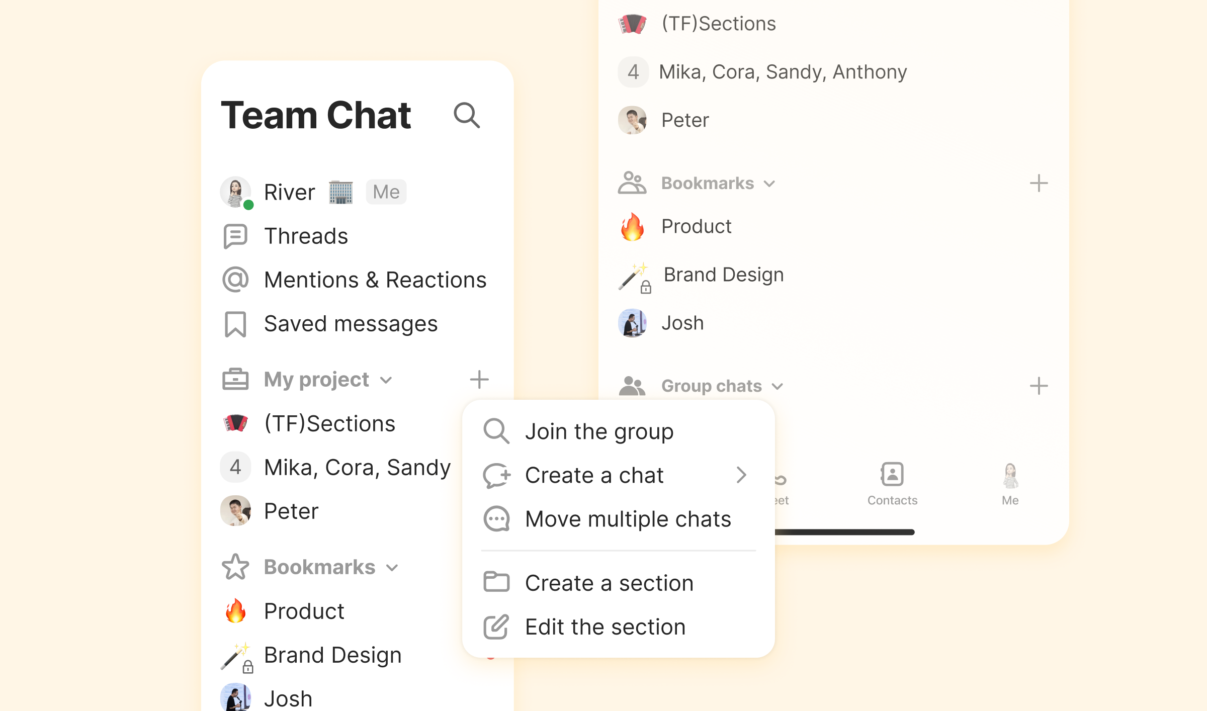 Categorize and bookmark important group chats, team members you talk to often, and more.