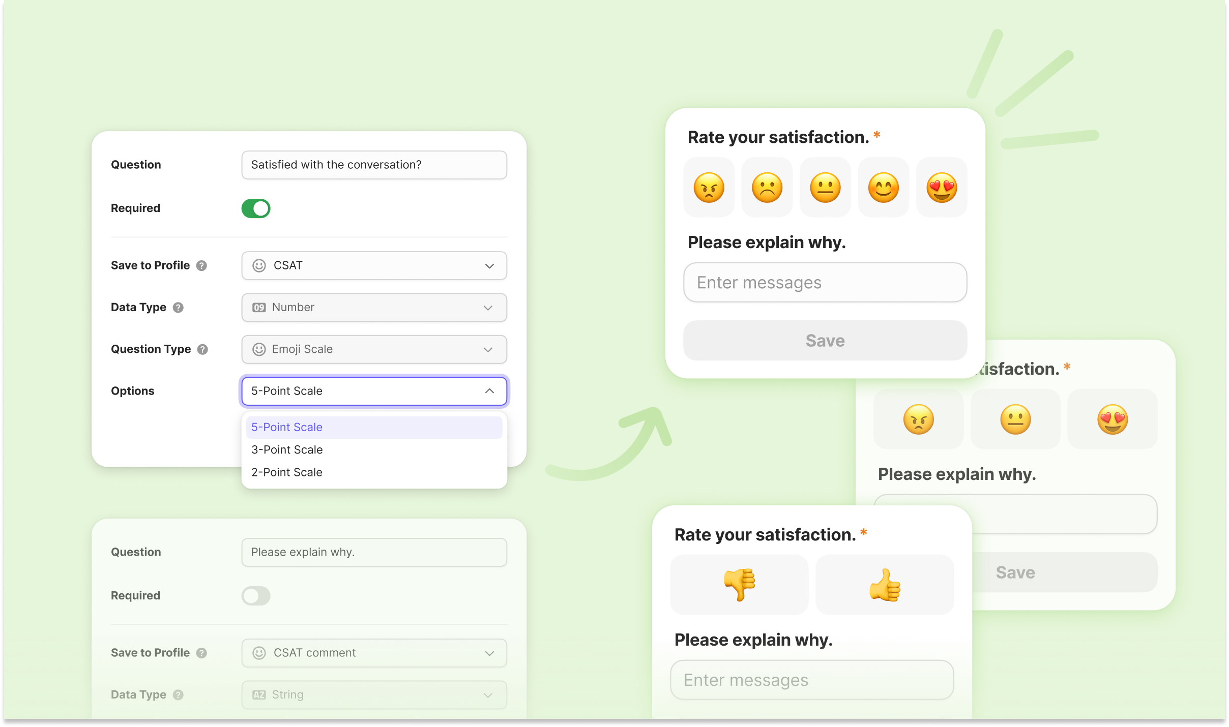 Chat profiles and customer satisfaction surveys: You'll be able to store more data from each customer conversation. Determine the importance and have conversations faster and more intuitively, and see if this personalized customer experience drives higher customer satisfaction with built-in surveys with automated actions.