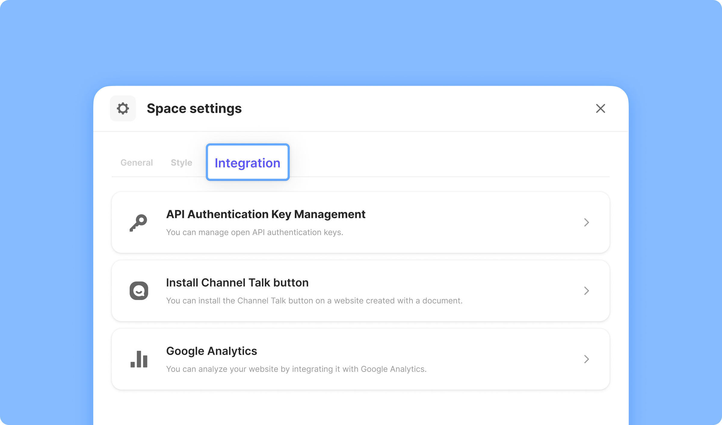 We're excited to announce that you can now insert Channel Talk buttons into your document space, a highly requested feature! Plus, external plugin integration and Open API capabilities are now supported, allowing you to embed spaces and articles into your own site for your customers. Additionally, a new article search feature makes it easier to manage and update your content.