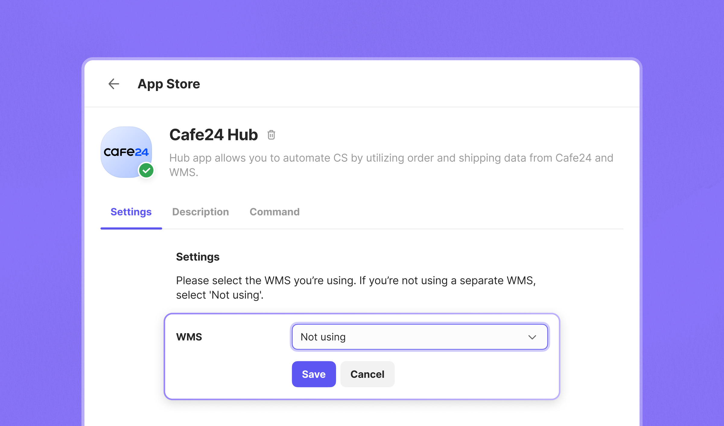 You no longer need a WMS (Warehouse Management System) like Sellmate—if you're using Cafe24, you can now integrate Channel Talk directly with the Cafe24 Hub.