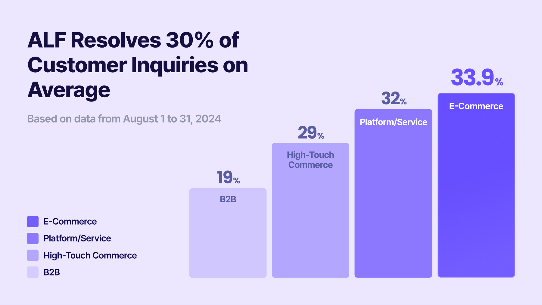 Each week, ALF handles over 20,000 inquiries, independently resolving around 30% without connecting to a human agent. In e-commerce, where simple inquiries are more common, ALF has achieved an inquiry reduction rate of about 34%. Even in more complex B2B industries, ALF demonstrates its effectiveness with a 19% inquiry reduction rate.