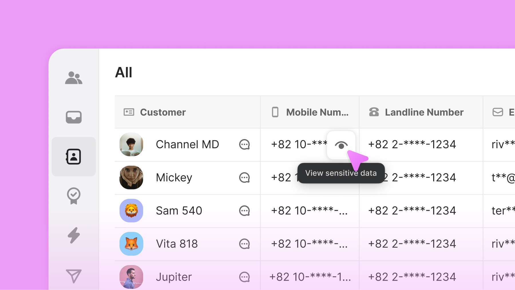Sensitive data fields within customer profiles can now be masked for enhanced data protection. A feature allowing you to view logs of managers who accessed sensitive data will also be available soon.