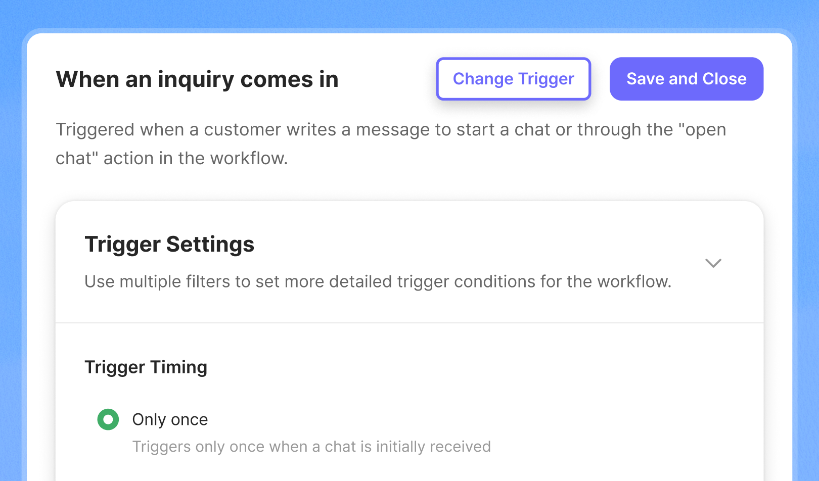 You can now modify the trigger of an existing workflow. Use this feature to significantly reduce workflow setup time!