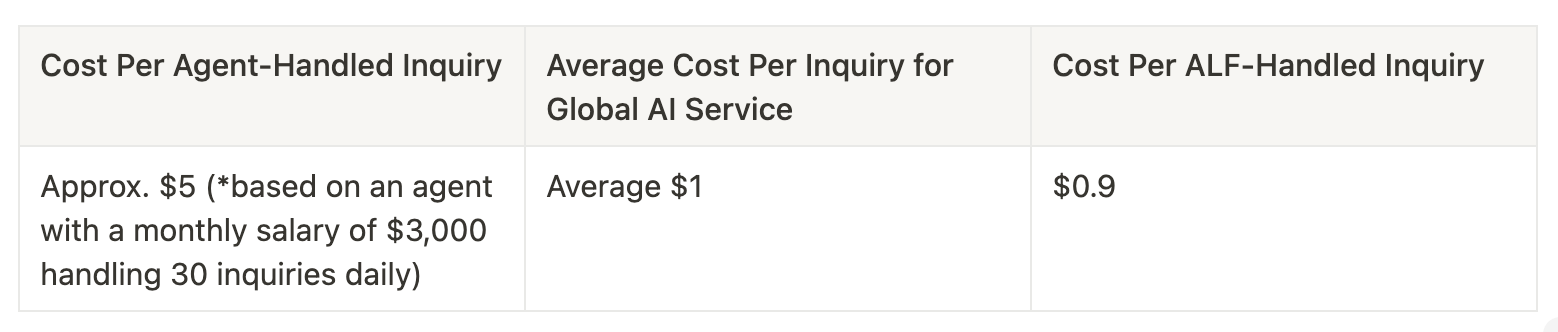 ALF’s pricing is set to be much more affordable than traditional agent handling costs or global AI chat services. You will only be billed for inquiries resolved without agent involvement, making ALF a more cost-effective choice. With ALF providing 24/7 multilingual support across 33 languages, you can optimize operational costs efficiently.