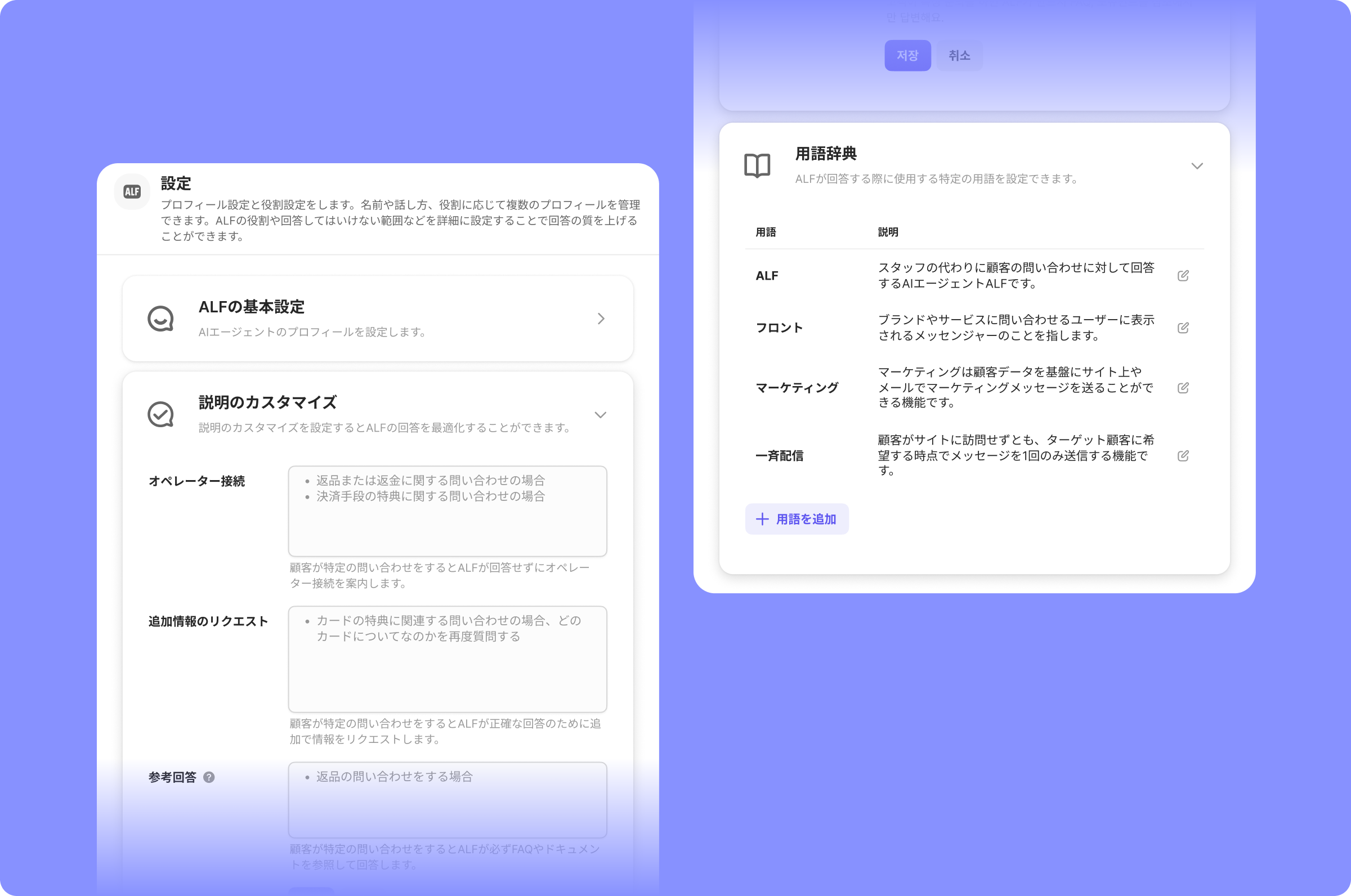 説明のカスタマイズと用語辞典を追加し、ALFが最適な回答をするために、細かい設定ができるようになりました👏