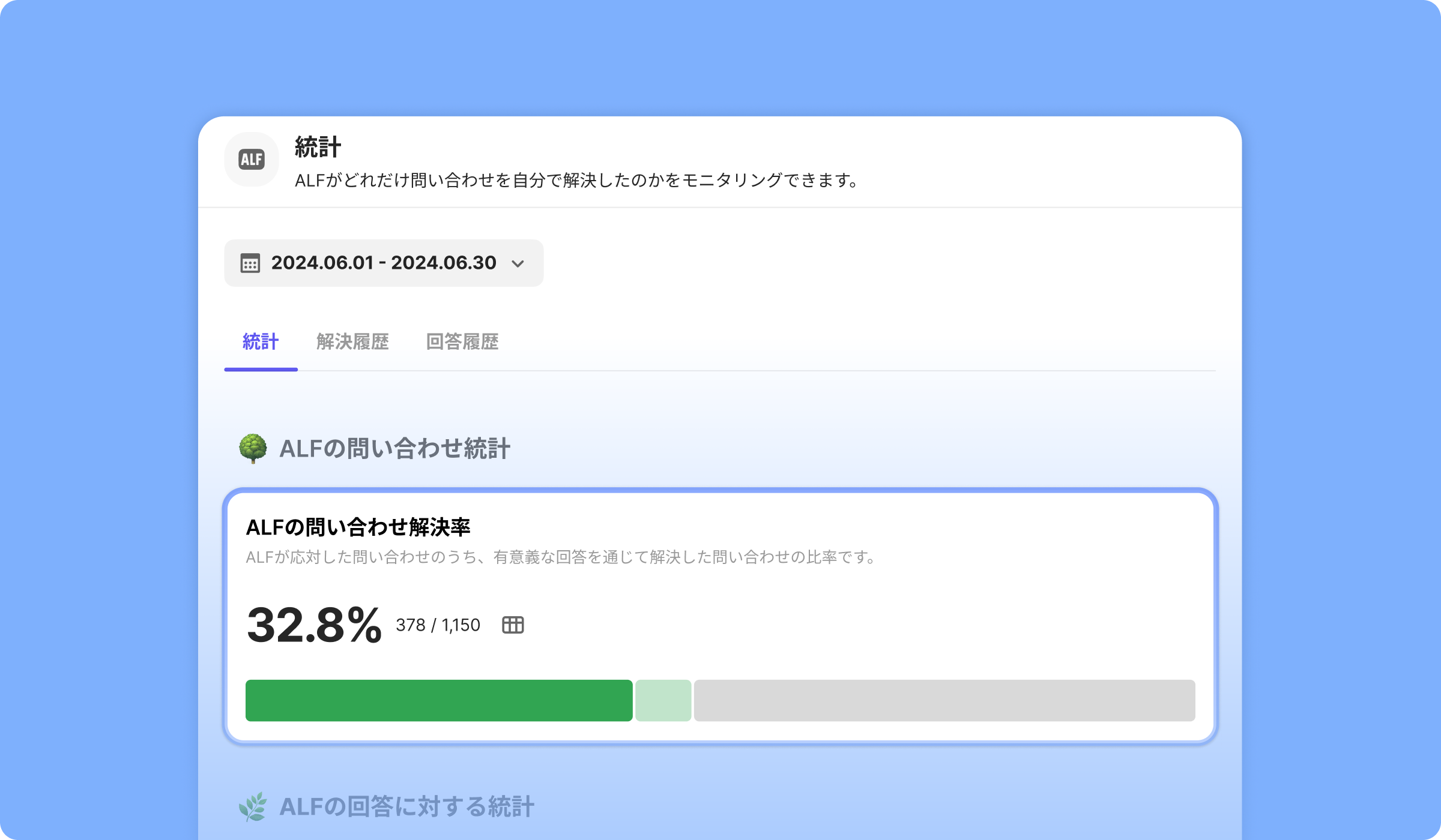 ALF統計画面でALFの問い合わせ解決率を確認できます。