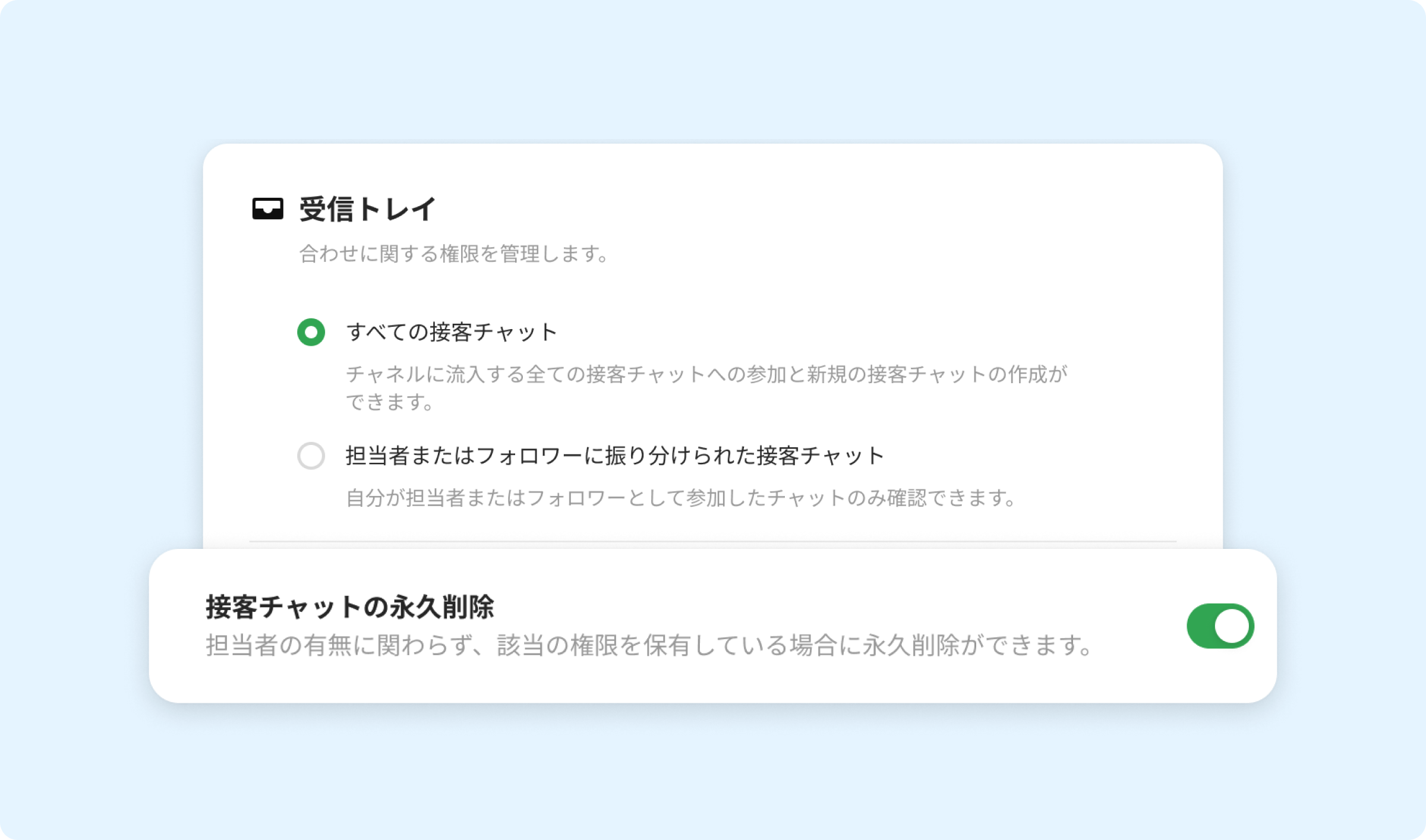 受信トレイの閲覧権限とは別に接客チャットの永久削除権限が追加されました。