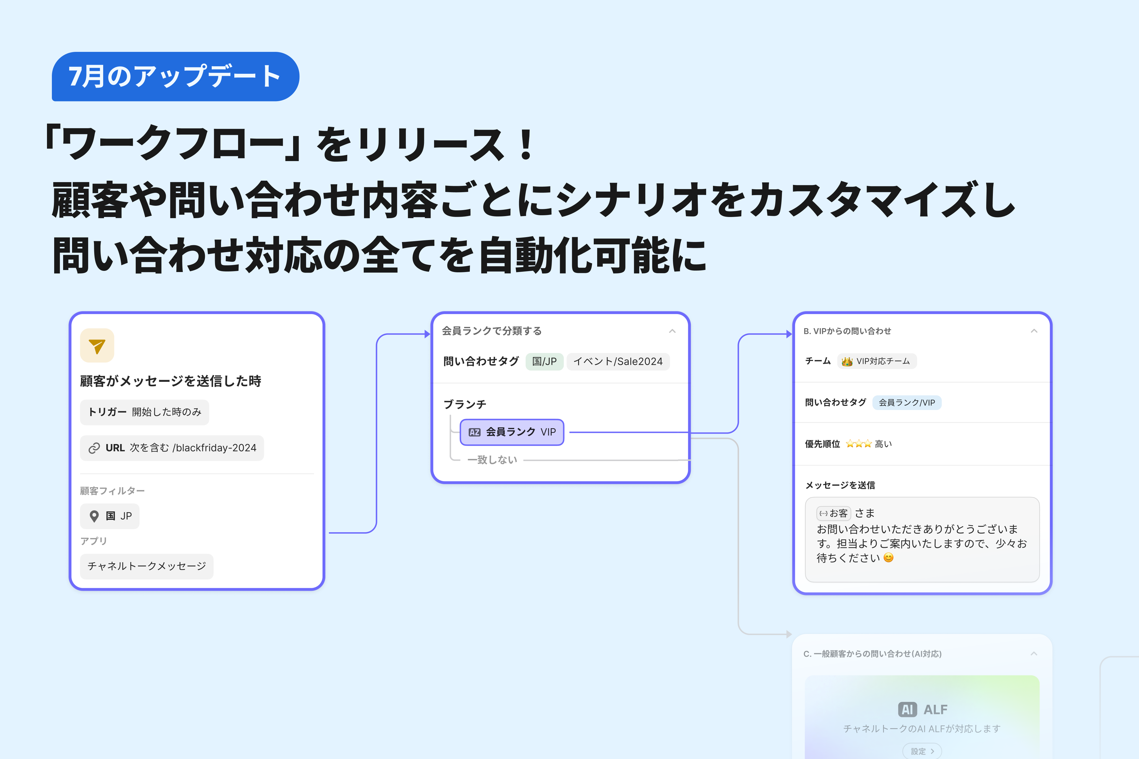 7月にAIエージェントALFがドキュメント内の記事を検索し、その中の文章を参考にして顧客と会話ができるようになります。