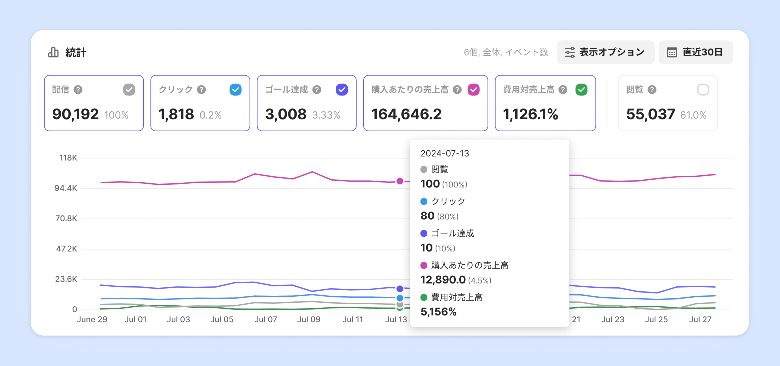 2. マーケティング統計ダッシュボードの「配信数」「閲覧数」「クリック数」