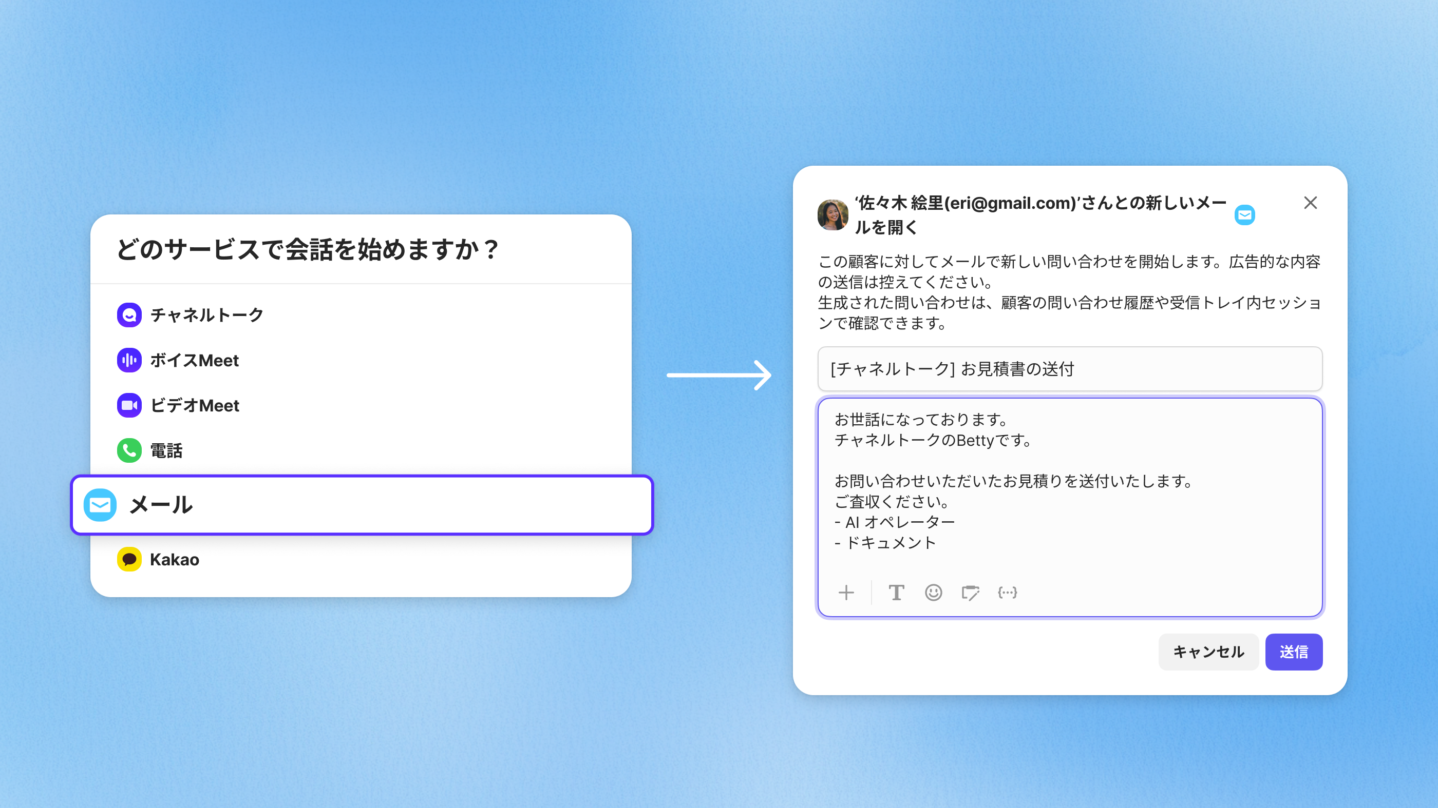 メールでのやり取りがより柔軟になりました。これまでは顧客からのメールを来てからメール連絡を開始することができましたが、これからは顧客プロフィールにメールアドレスが登録されていればスタッフが先にメール連絡を開始して会話を始めることができます。また、メール連絡の開始時にタイトルも直接設定できます。