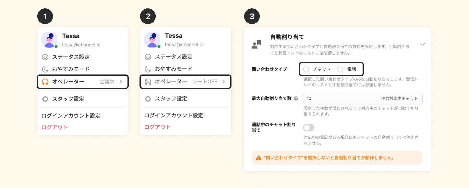2025年1月17日に「オペレーターステータス」と「電話モニタリング」機能を新たにリリースいたします。これに伴い、問い合わせの自動割り当てと通知設定の方法に一部変更点がありますので、ご案内いたします。
